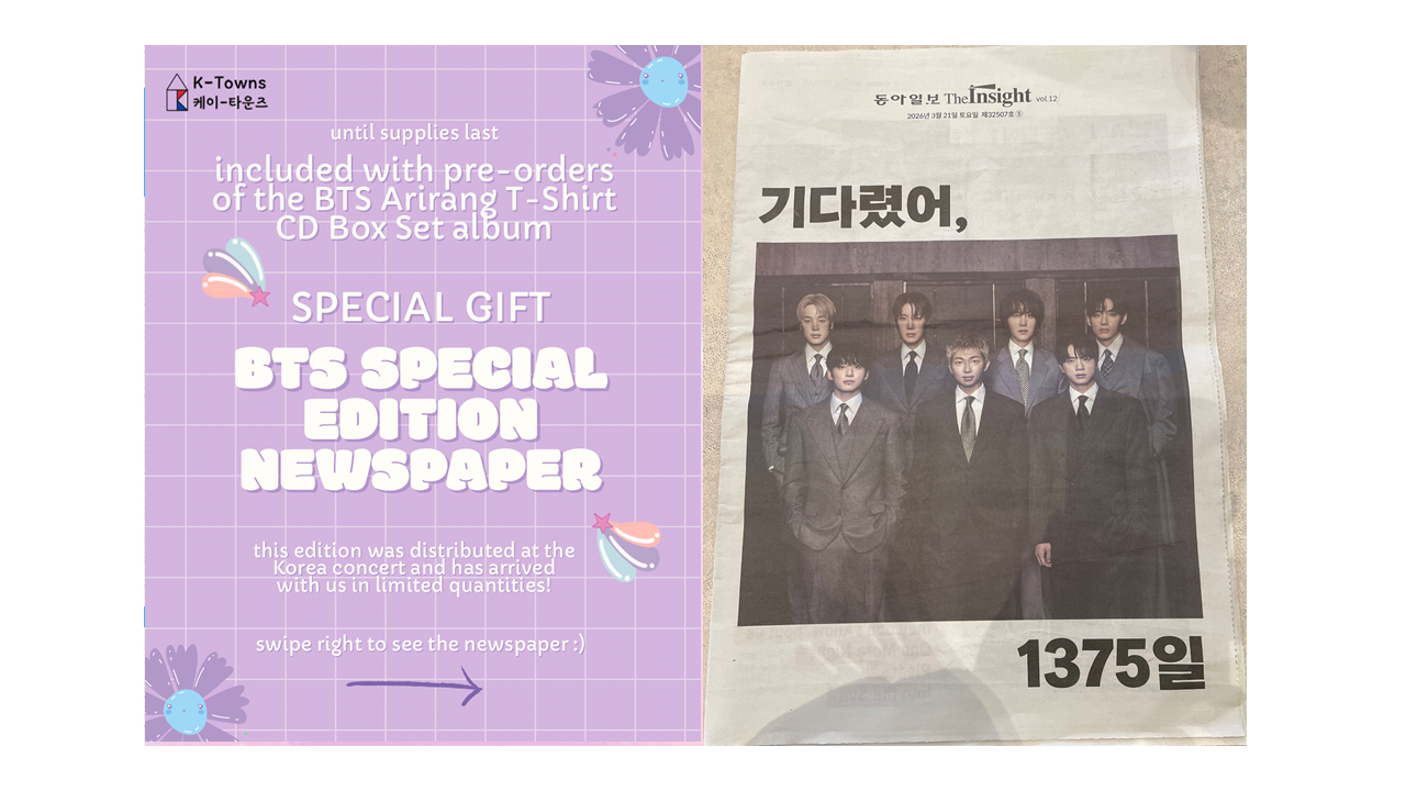 ![(PRE-ORDER 2026-05-04) BTS - 5th Album [ARIRANG] T-Shirt CD Box Set](http://www.ktowns.ca/cdn/shop/files/row-1-column-1_9_e3a674f1-bd24-454a-ae50-8054794f8acb.jpg?v=1776401598&width=533)