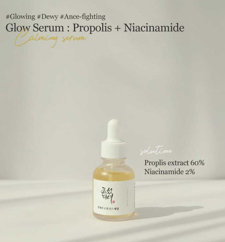 - Propolis extract 60% : There is a record that women in the Joseon Dynasty used honey and grain powder as a wash-off mask pack to care for their skin. As a skincare ingredient, proplis extract is effective for hydrating the skin improving inflammed skin.