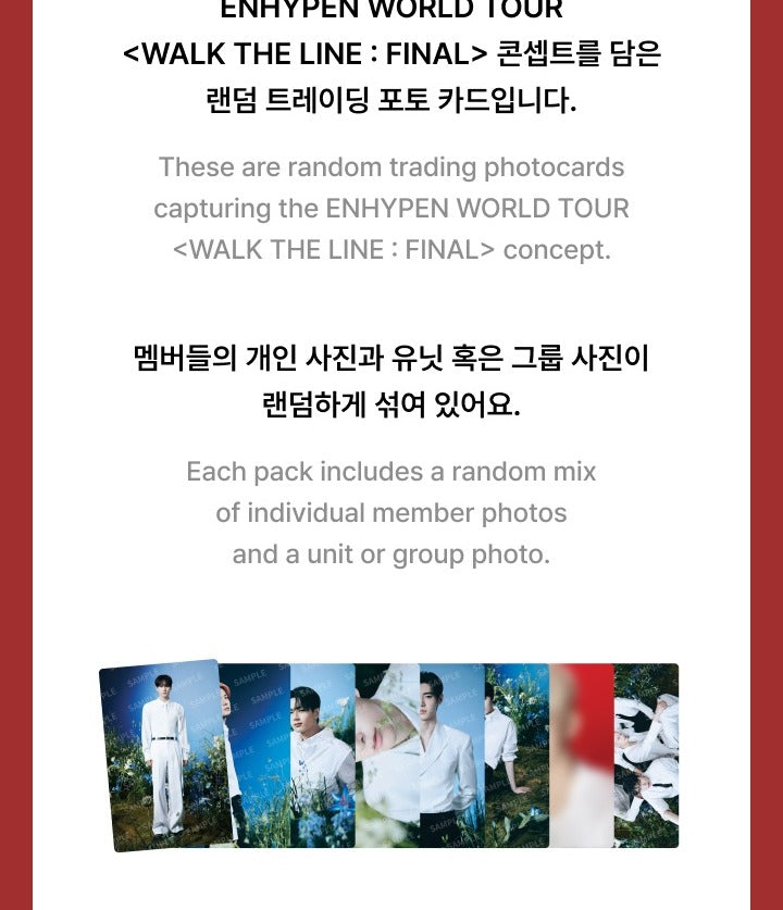 (PRE-ORDER 2026-01-30) ENHYPEN - WORLD TOUR <WALK THE LINE : FINAL> TRADING CARD