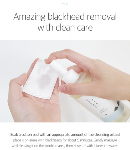 Take an appropriate amount of cleansing oil on a cotton pad, apply it on the affected area with blackheads for 5 minutes, massage, and then gently cleanse your face with lukewarm water.