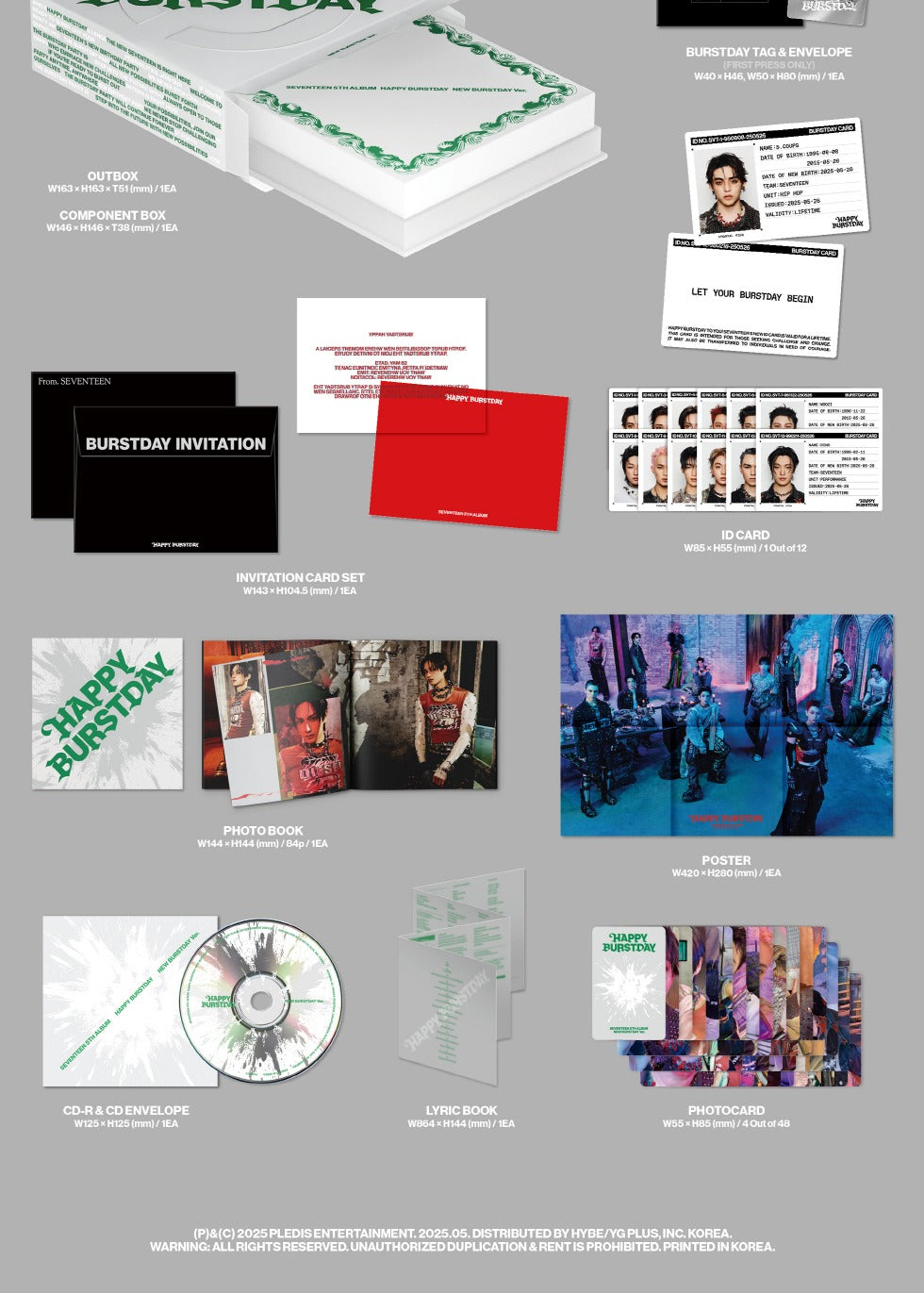 SEVENTEEN - 5th Album [HAPPY BURSTDAY] (3 Versions) Set (POB - ID Photo 3ea Included - Limited Quantity)